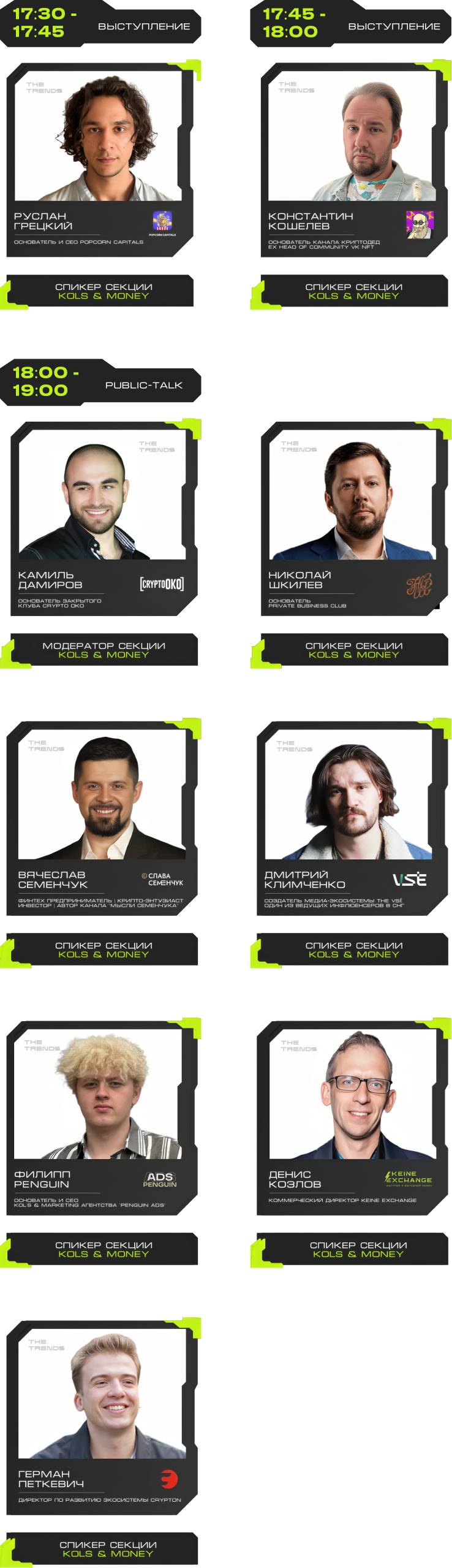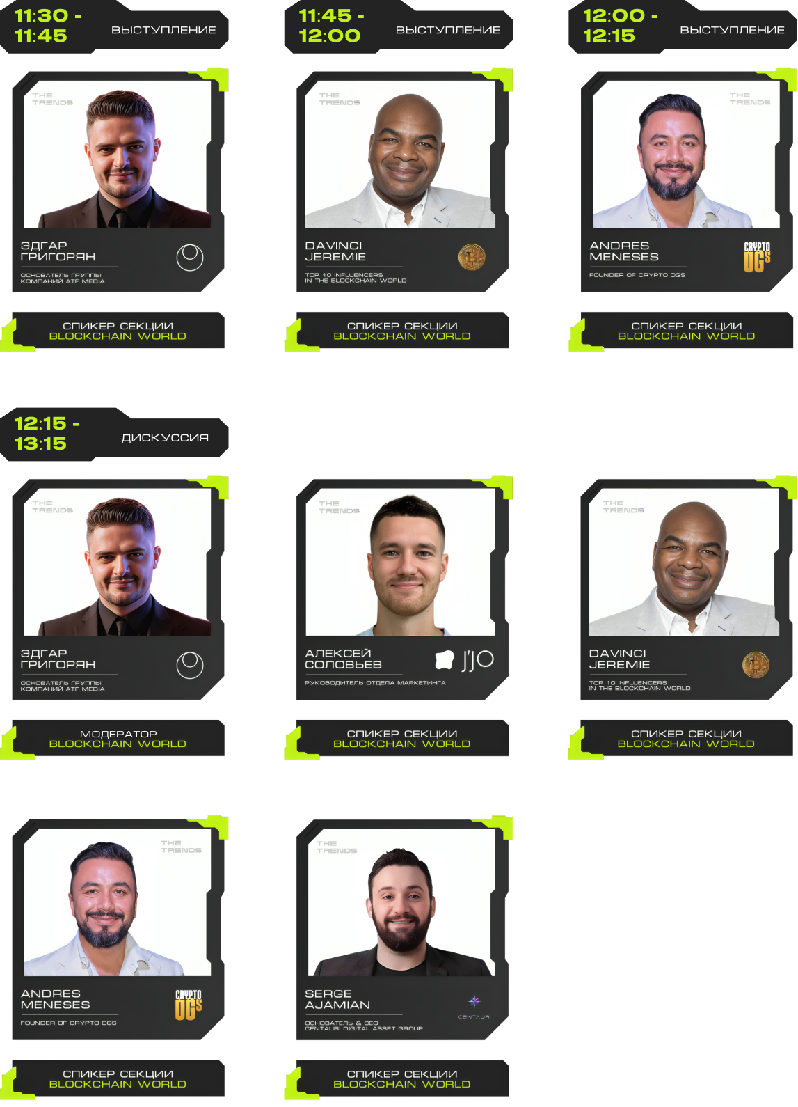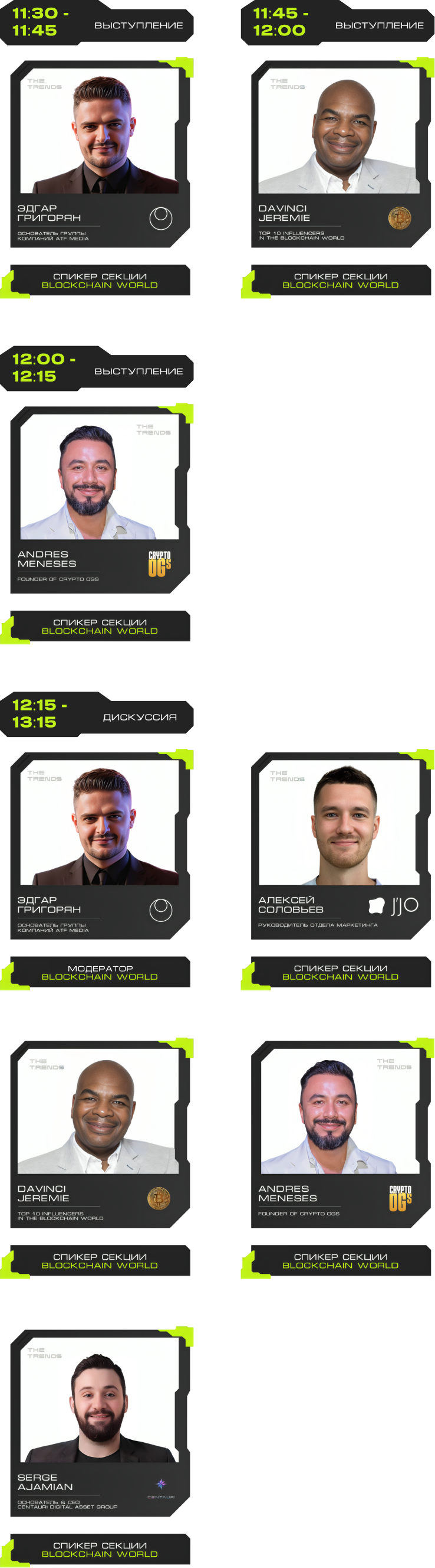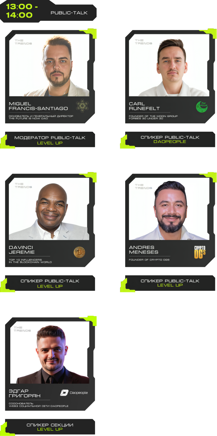 J'JO, TRON, OKX, 0XProcessing, ICE LAB, BitGet, Ассоциация Промышленного Майнинга, BingX, Regolith, IBMM, MINING CLUSTER, LEOMINING, Fintopio, BitCube Server, Storm Trade, Hellopixel, Energo, X11, Смешарики, Regolith, KEINE EXCHANGE, 4Ex, COEX, Safewallet, Tags&Talks, ProBlockchain Media, Спутник, АО “Нейросети”, YoYo Swap, AG Soft, Architec.Ton, VORPAL, GMT LEGAL, POPCORN CAPITALS, SAS, BRIDGE, Crypto Emergency, STEPNGO, OnClickA, MunGame, ATF Media, Whales KOLs, Marsel Invest, cryptoOKO, Profsouz, Neurovision, Flopi, DrinkSome, DDAO3.0, Portal VR