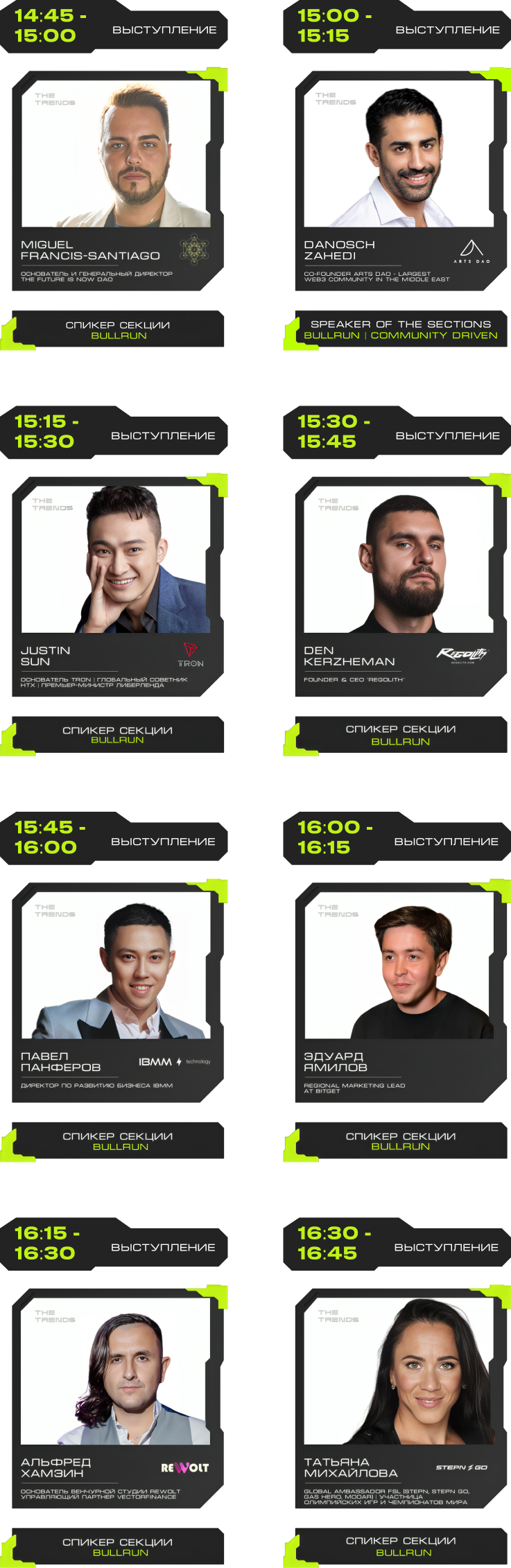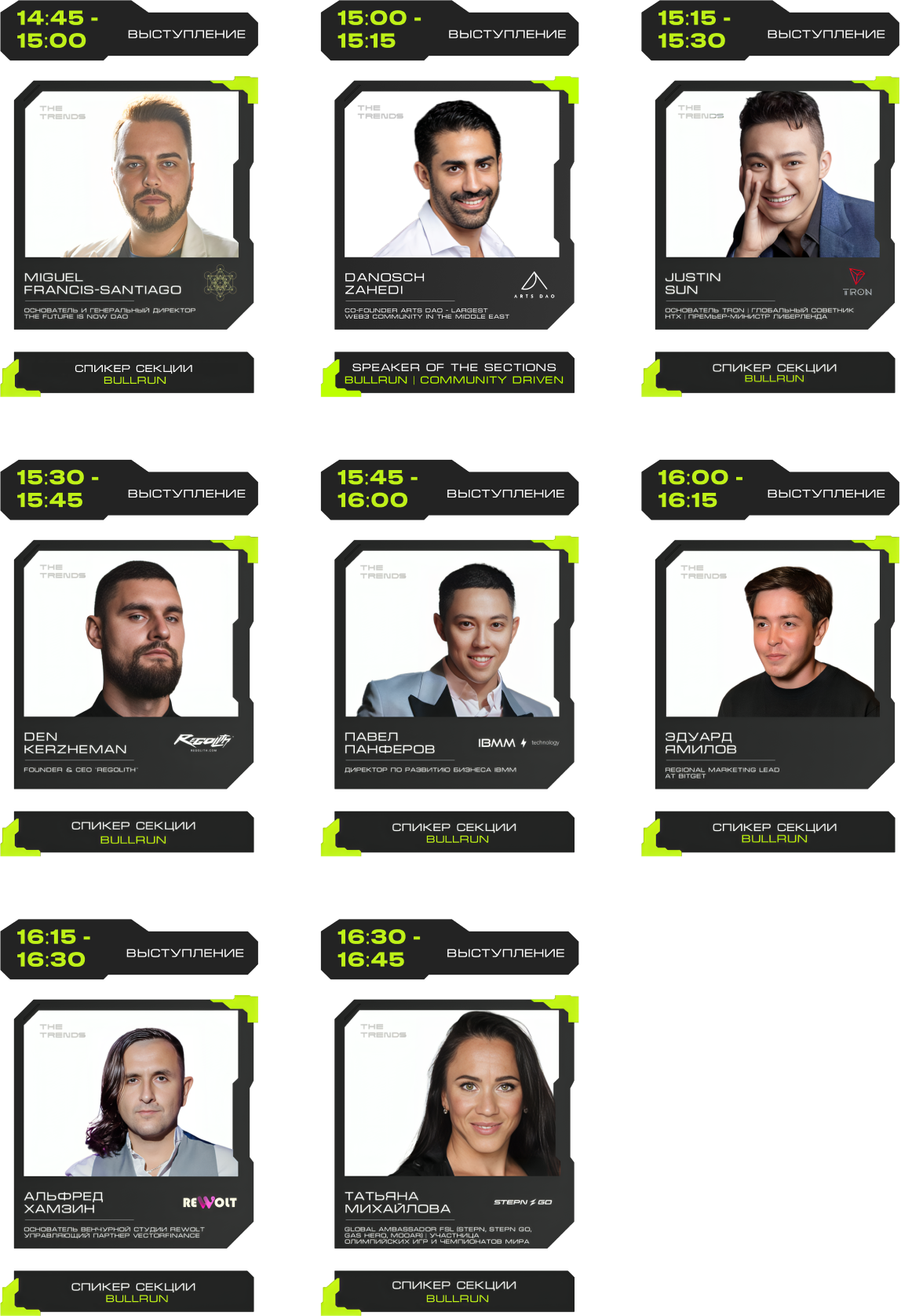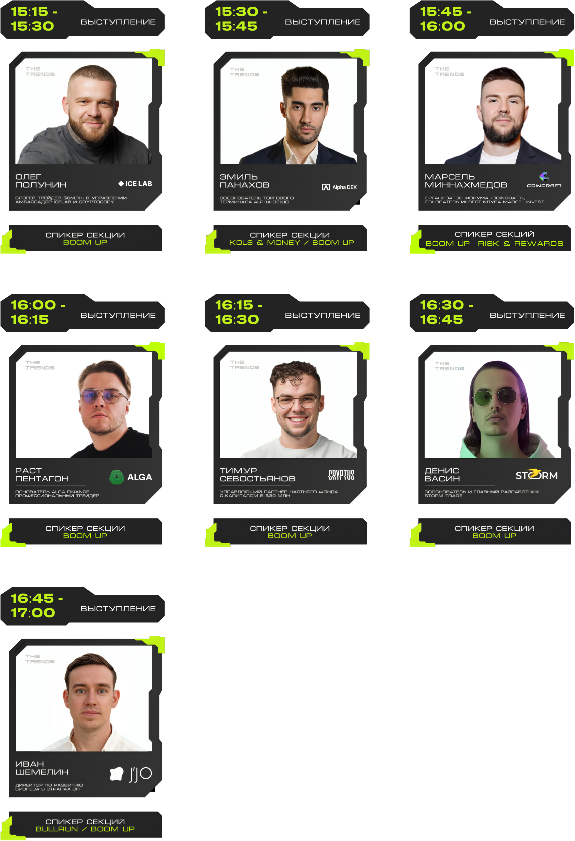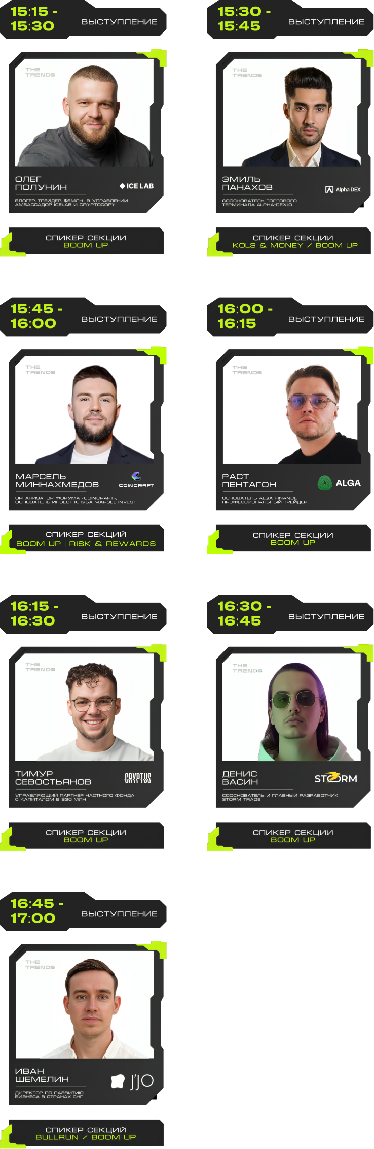 J'JO, TRON, OKX, 0XProcessing, ICE LAB, BitGet, Ассоциация Промышленного Майнинга, BingX, Regolith, IBMM, MINING CLUSTER, LEOMINING, Fintopio, BitCube Server, Storm Trade, Hellopixel, Energo, X11, Смешарики, Regolith, KEINE EXCHANGE, 4Ex, COEX, Safewallet, Tags&Talks, ProBlockchain Media, Спутник, АО “Нейросети”, YoYo Swap, AG Soft, Architec.Ton, VORPAL, GMT LEGAL, POPCORN CAPITALS, SAS, BRIDGE, Crypto Emergency, STEPNGO, OnClickA, MunGame, ATF Media, Whales KOLs, Marsel Invest, cryptoOKO, Profsouz, Neurovision, Flopi, DrinkSome, DDAO3.0, Portal VR